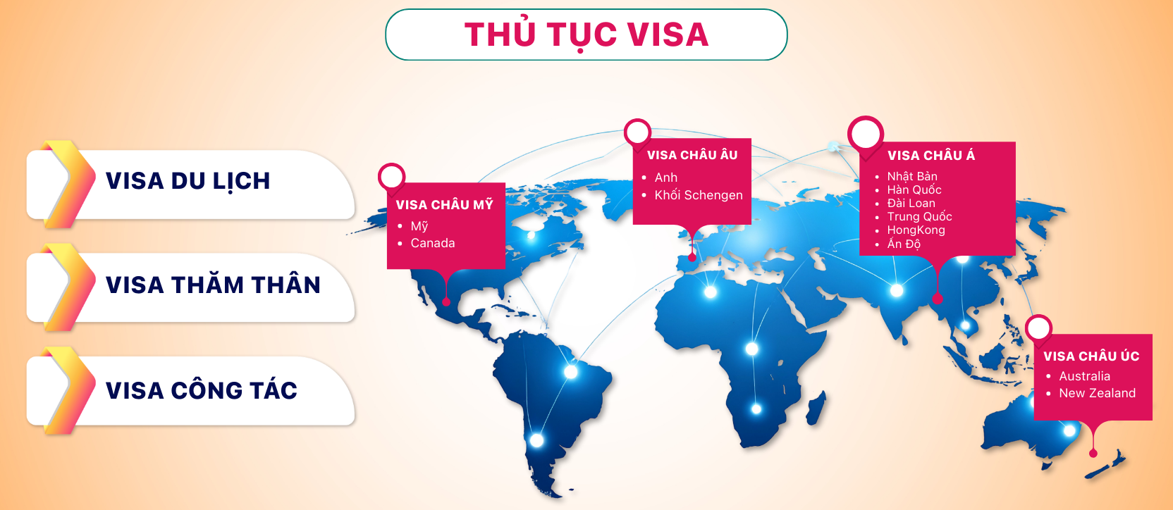 – Tư vấn thủ tục và hồ sơ của từng quốc gia theo thời loại visa.